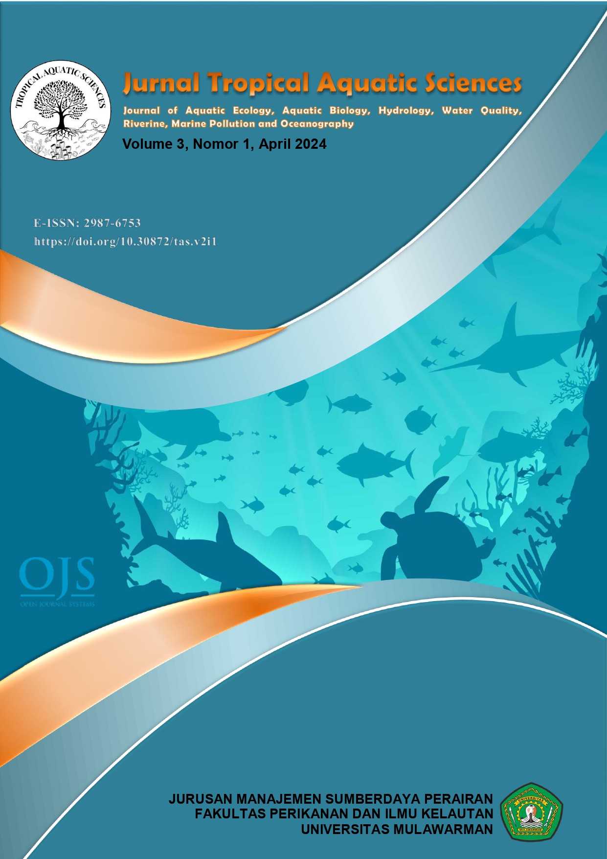 Jurnal Tropical Aquatic Sciences (TAS) is a means for researchers in the field of Fisheries and Marine Science to publish scientific research results. First published in 2022 with a biennial publication period in April and October. The TAS Editorial Board consists of Fisheries and Marine Science lecturers in various areas of expertise concentration such as aquatic ecology, aquatic biology, hydrology, water quality, riverine marine pollution, and oceanography.